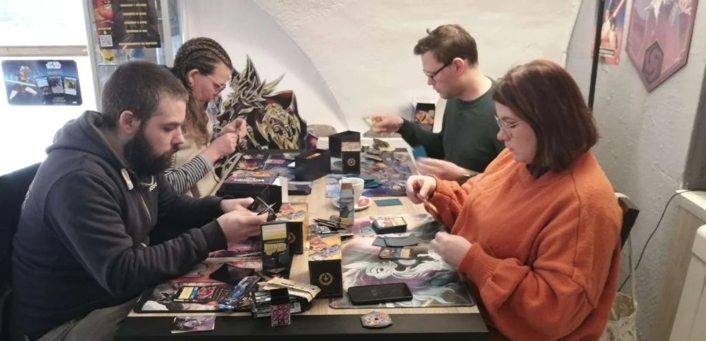 Tous les jeudis à partir de 18h30, les Illumineurs de Lorcana sont présents à l’Antre. Dans un esprit convivial ils constituent leur deck en fonction de règles évolutives, pour ensuite s’affronter dans des matchs amicaux. Participer aux sessions de jeu de la Ligue permet de gagner des points, et ainsi remporter en fin de chaque mois des cartes et goodies exclusifs.